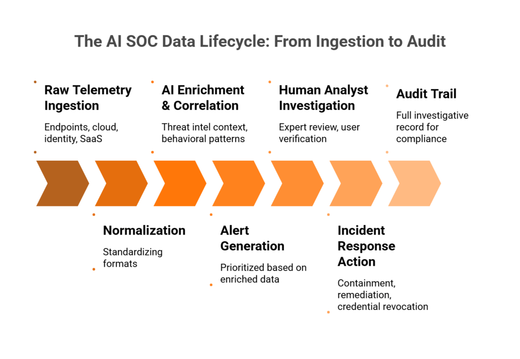 Every AI SOC processes security data through a multi-stage lifecycle, and each stage creates data with jurisdictional, compliance, and ownership implications: